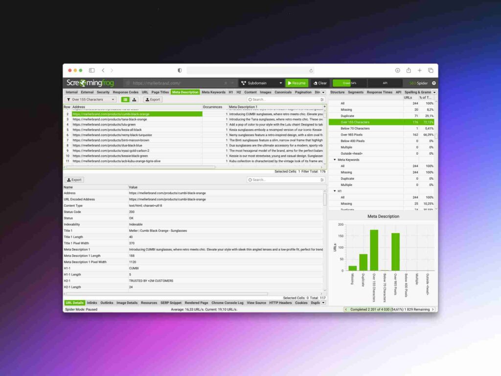 Ferramenta super poderosa para realizar auditorias técnicas a qualquer site. Permite simular o processo de crawl tal como os spiders dos motores de busca e identificar oportunidades de melhoria e problemas a corrigir. Encontra links partidos, identifica páginas com conteúdo duplicado, constrói XML sitemaps, analisa meta tags e muito mais.